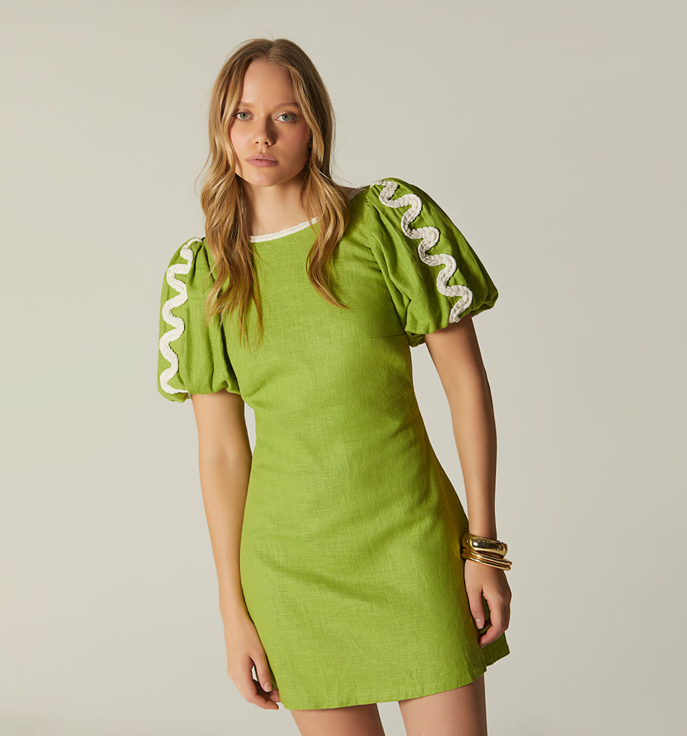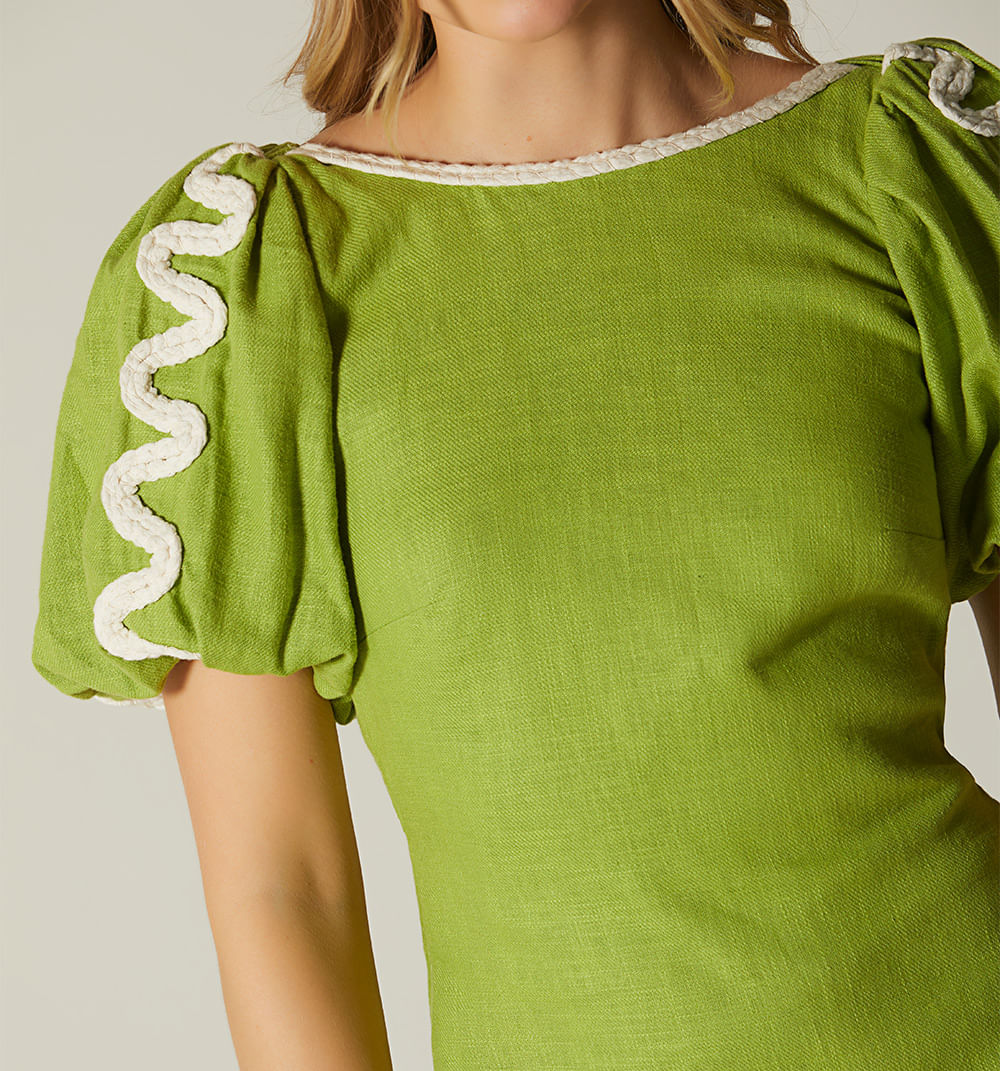 Vestido Manga Corta Con Cordon Trenzado