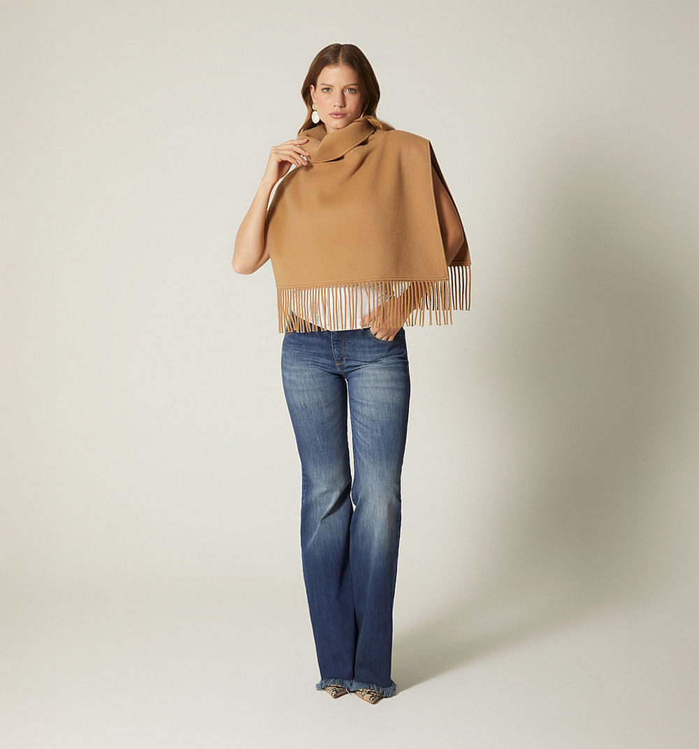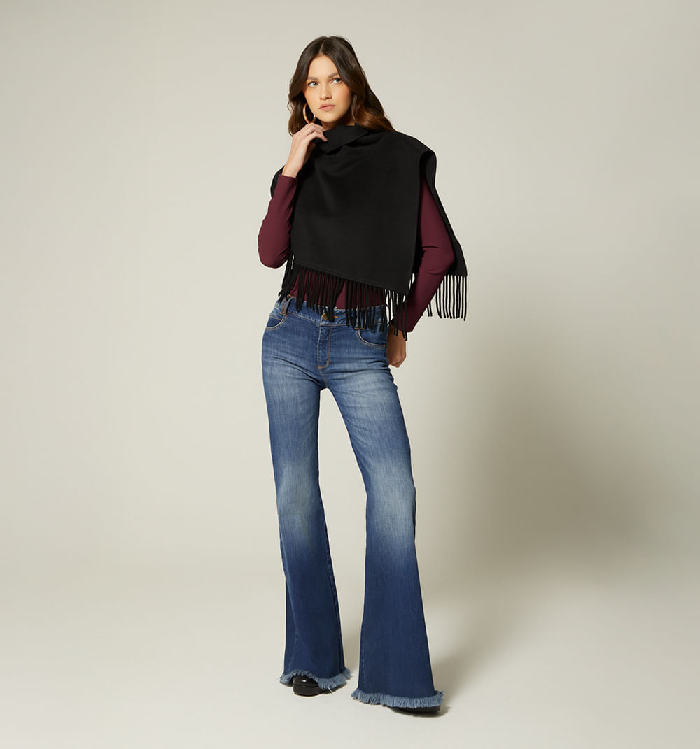 Poncho Corto Con Flecos