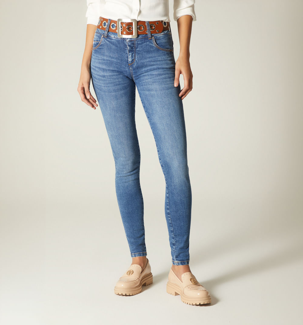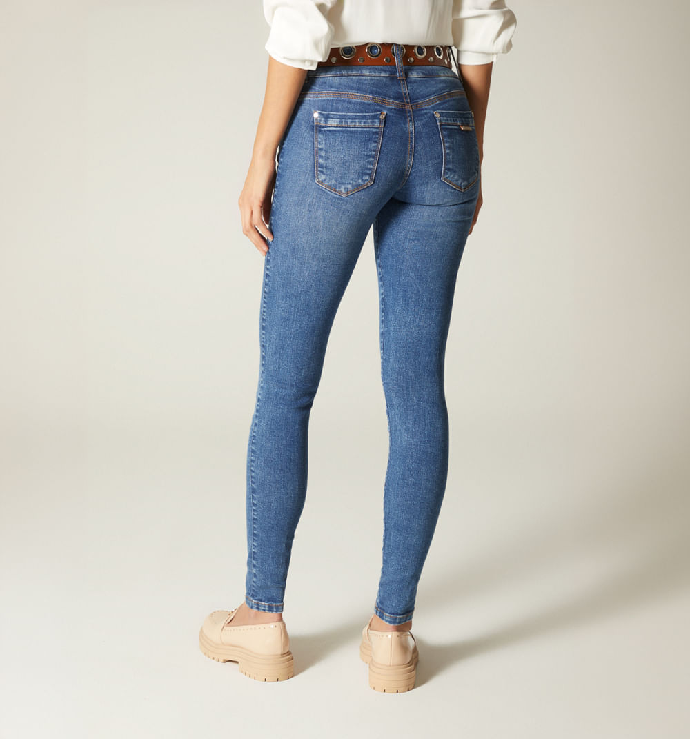 Jean Skinny Tiro Medio, Cinco Bolsillos,