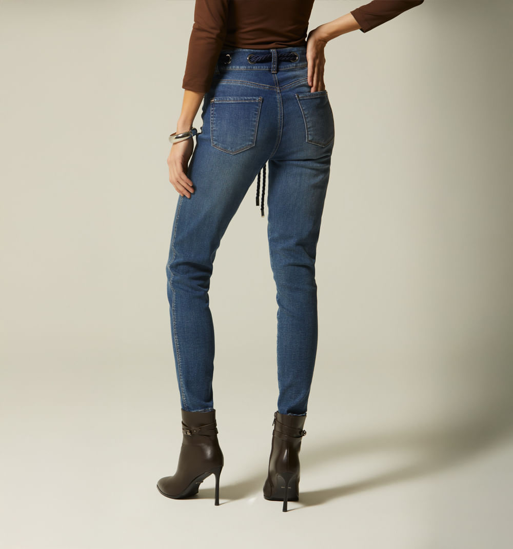 Jean Skinny Tiro Alto Ojaletes Y Cordon.