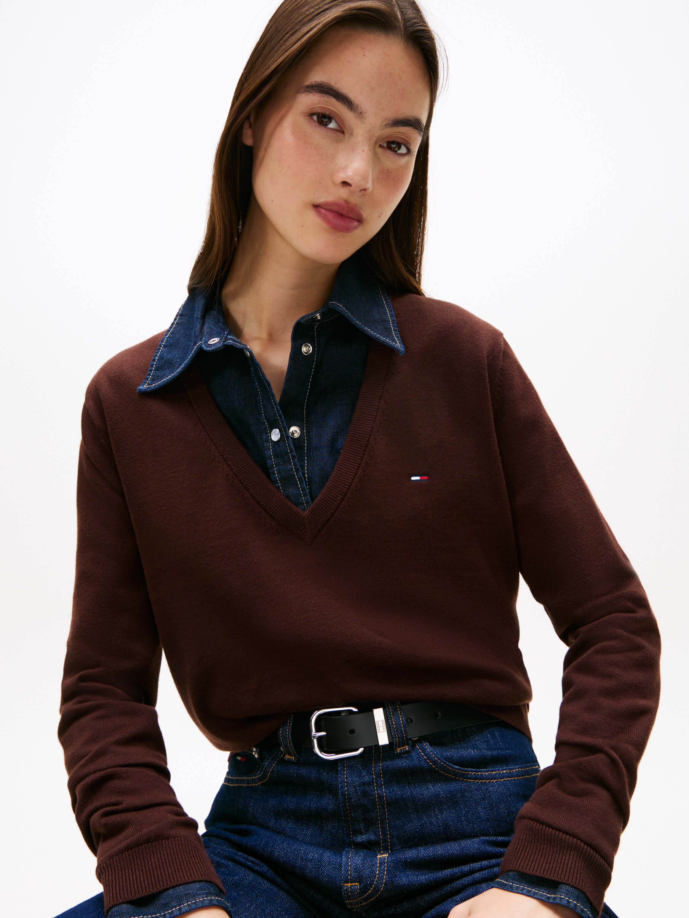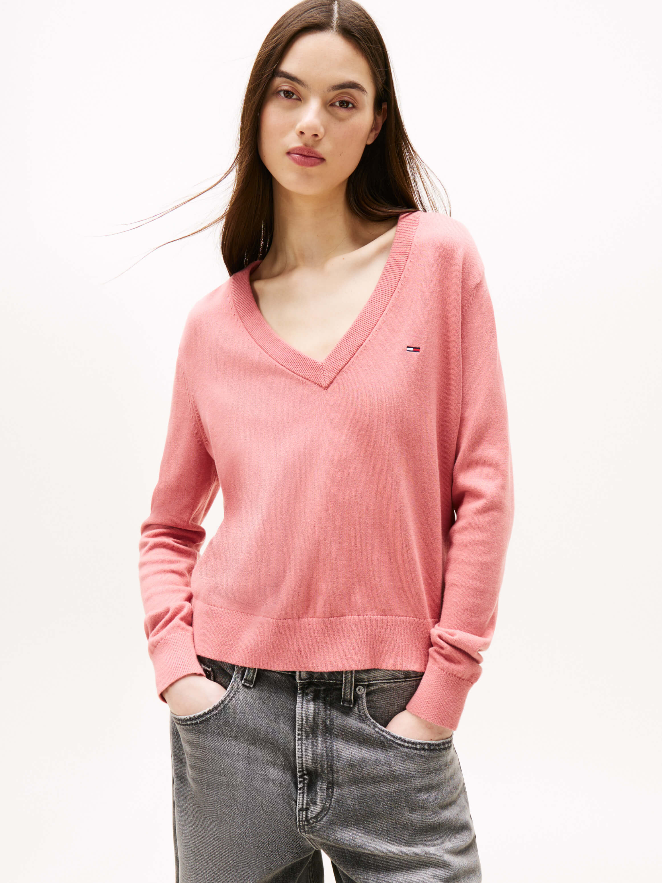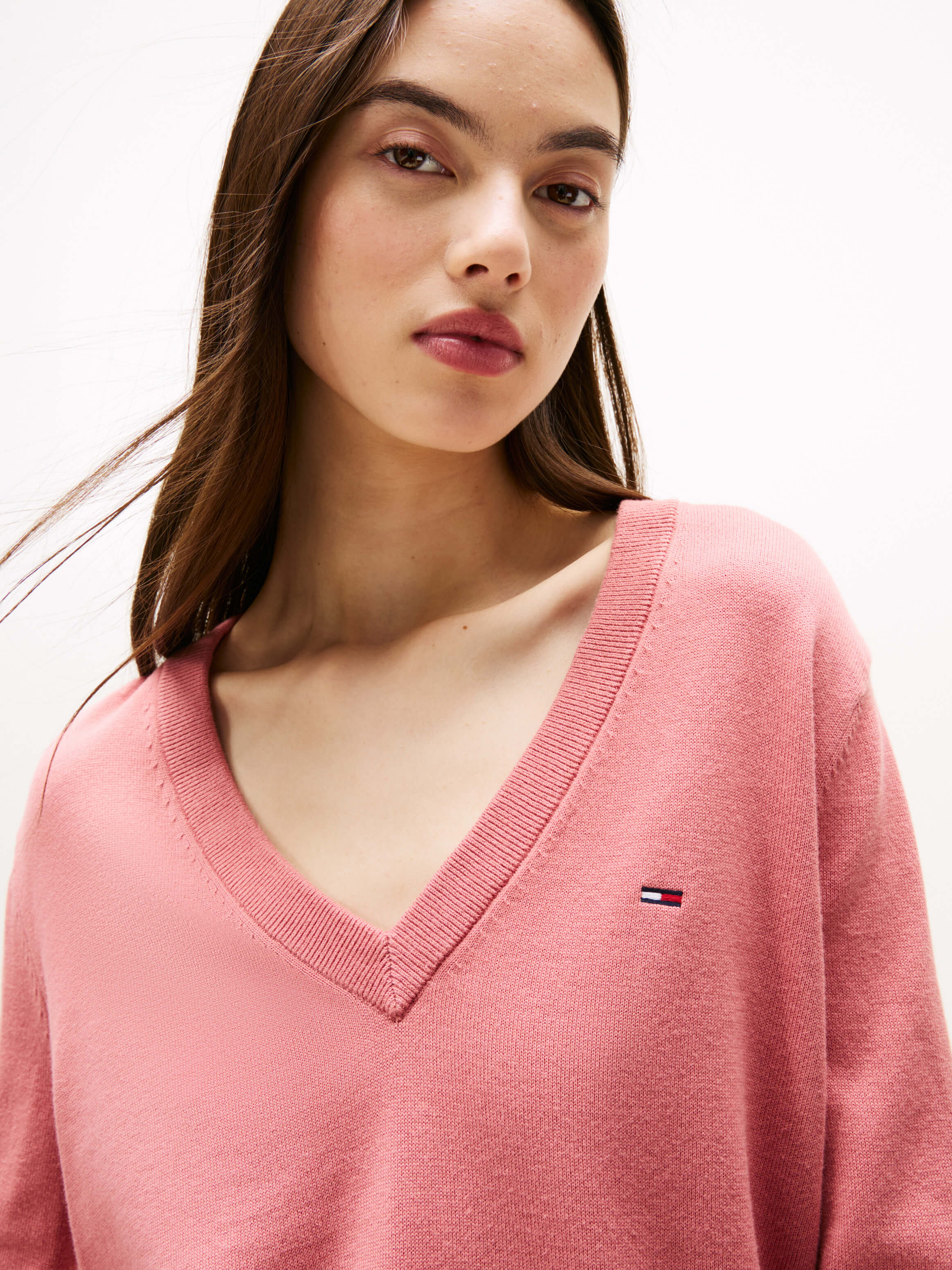 Suéter Con Cuello De Pico Y Logo Bordado De Mujer Tommy Jeans