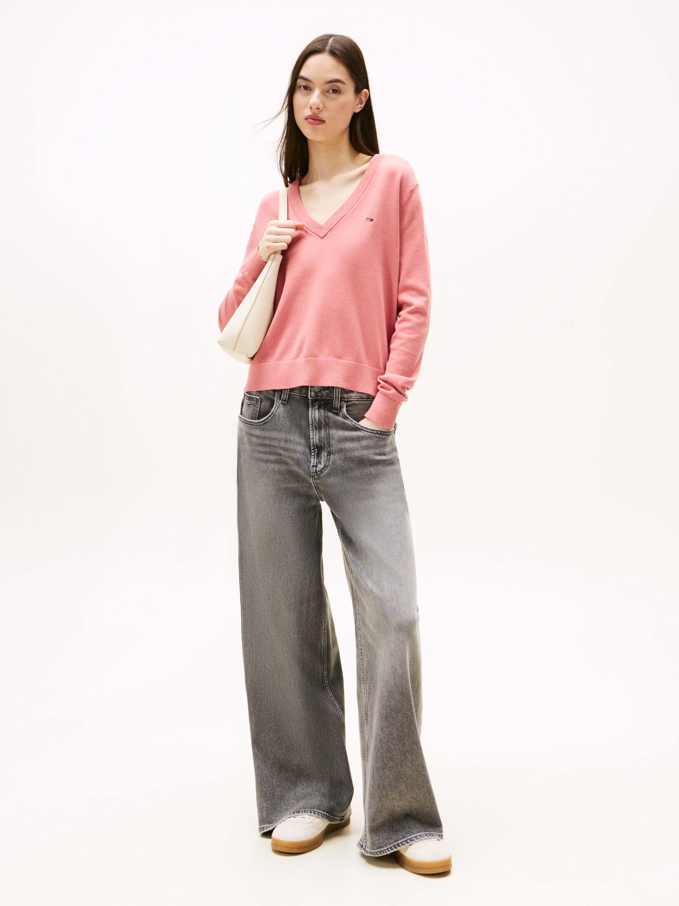 Suéter Con Cuello De Pico Y Logo Bordado De Mujer Tommy JeansTalles disponibles