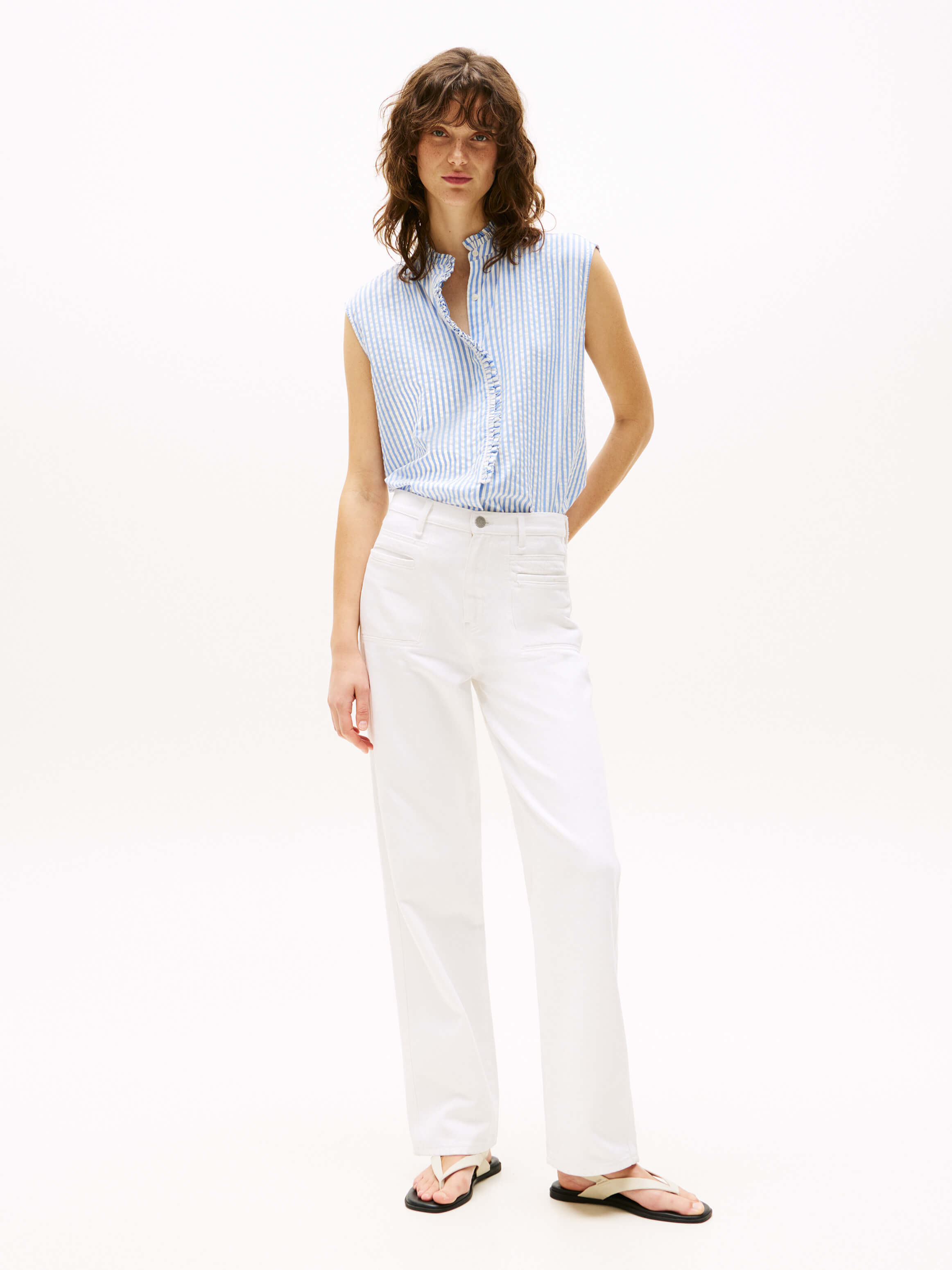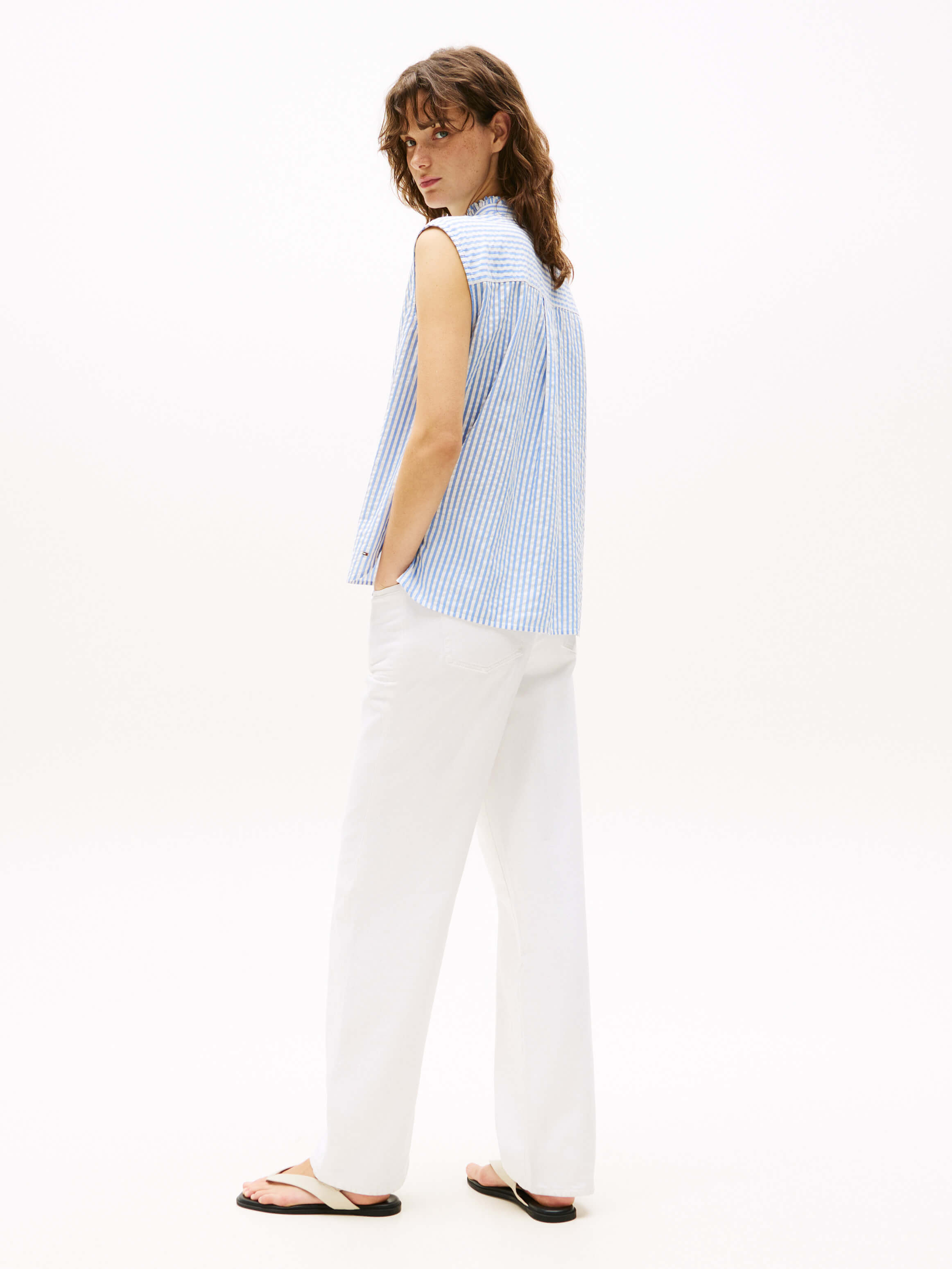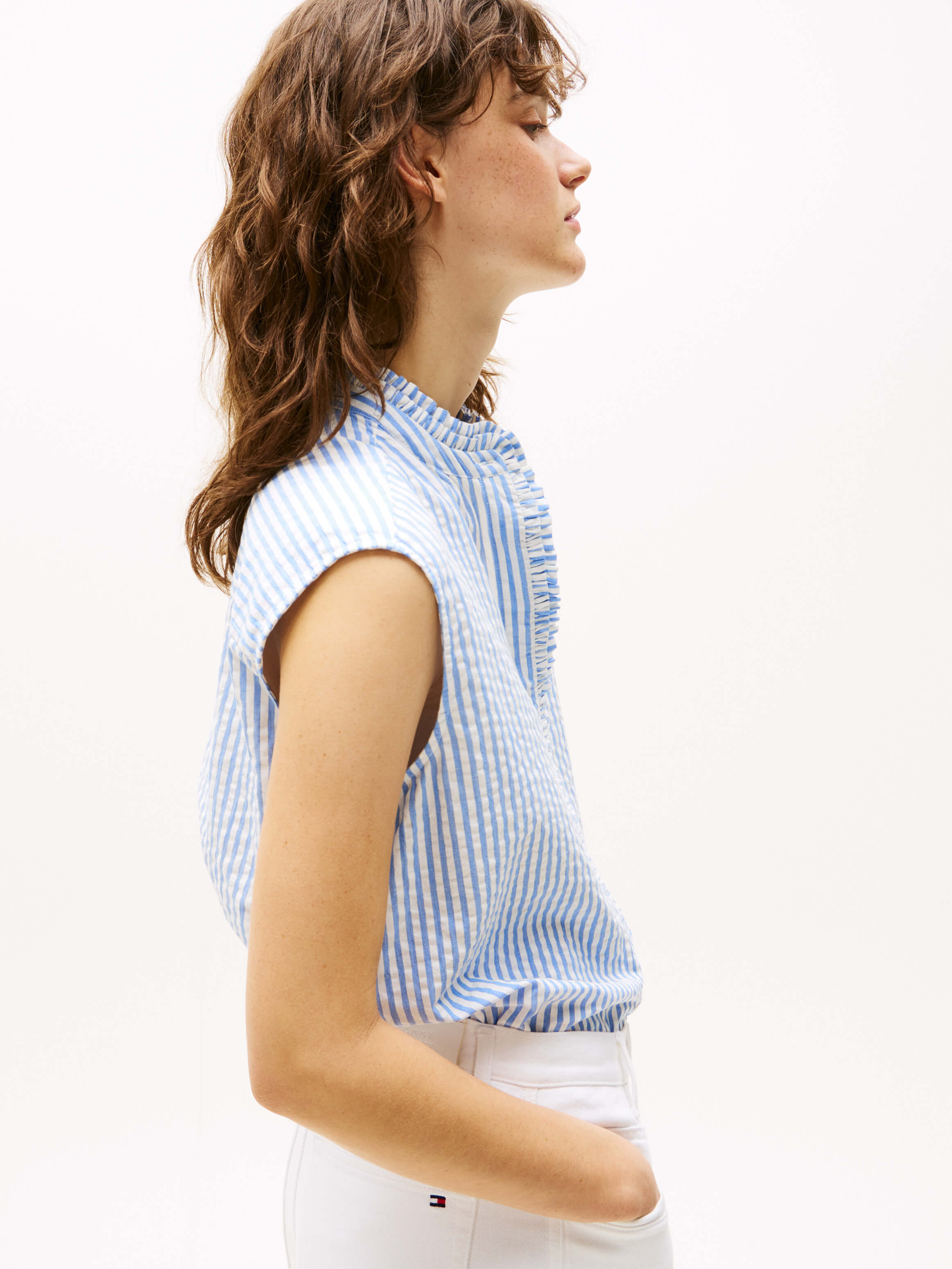 Blusa De Algodón Mil Rayas Con Volantes De Mujer Tommy Hilfiger