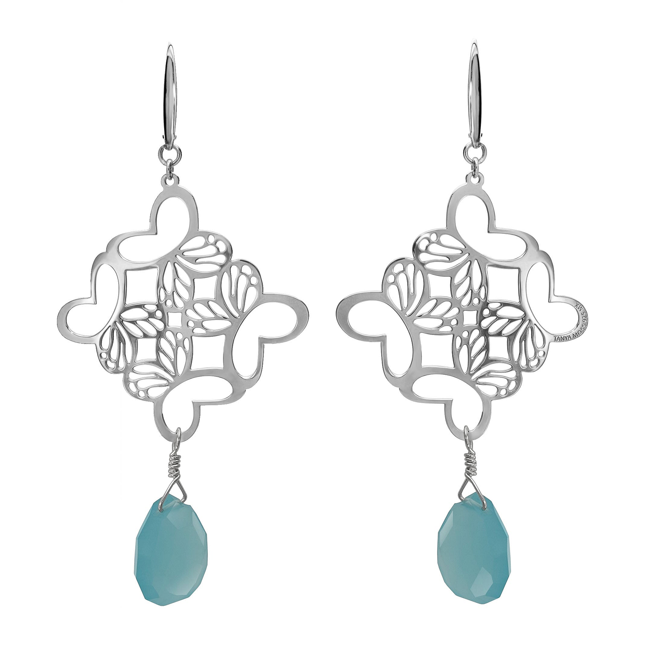 Aretes Rombo Monarca Plata Con CalcedoniaDescripción