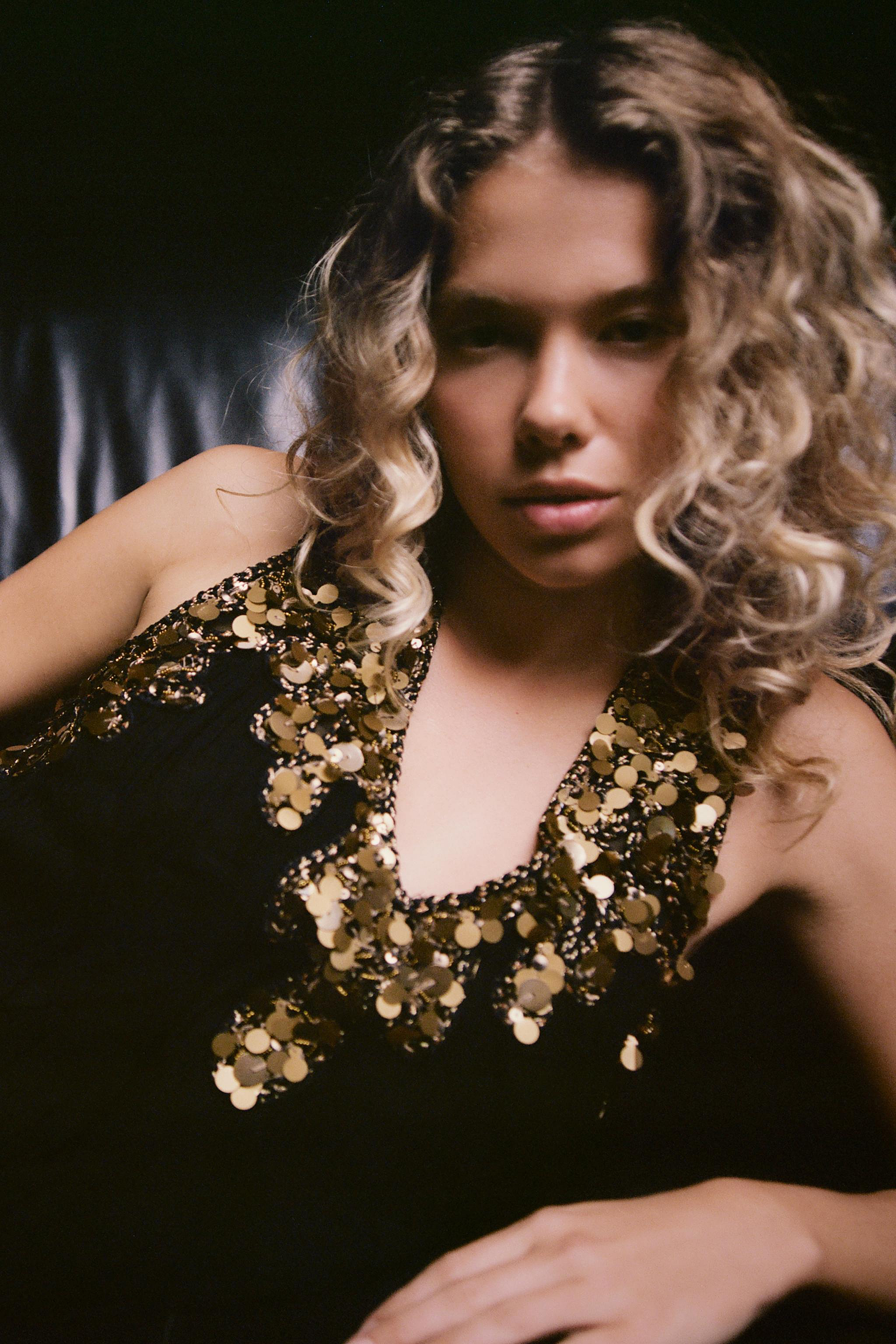 Vestido Georgette Plisado Lentejuelas