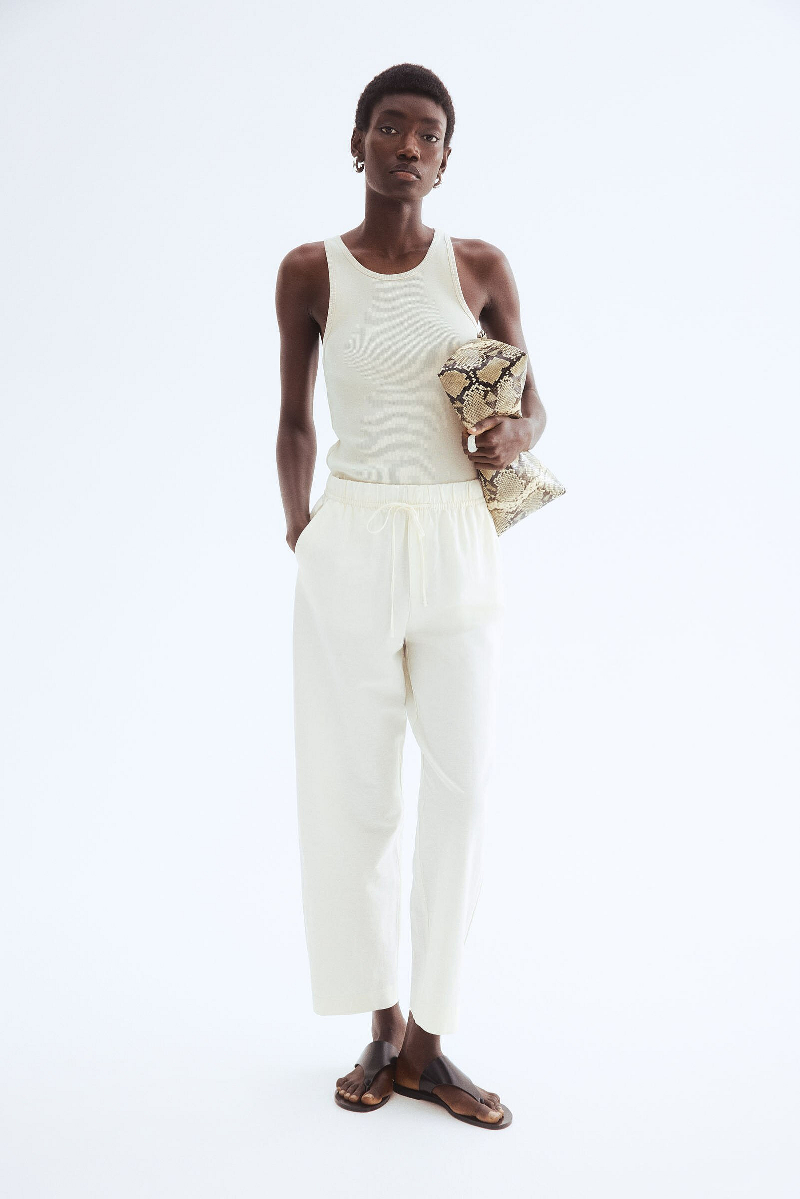 Pantalón En Mezcla De Lino Con Cordón Para Ajustar